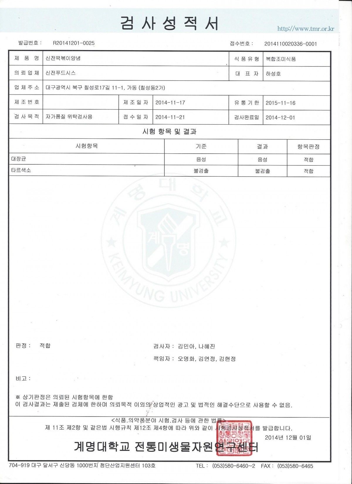 2014 | 2014 - 11 검사성적서 페이지 정보 작성자 신전떡볶이 작성일14-12-02 15:21 조회4,621회 댓글0건 관련링크 이전글 다음글 검색 목록 본문 2014 - 11 검사성적서 이전글 다음글 검색 목록