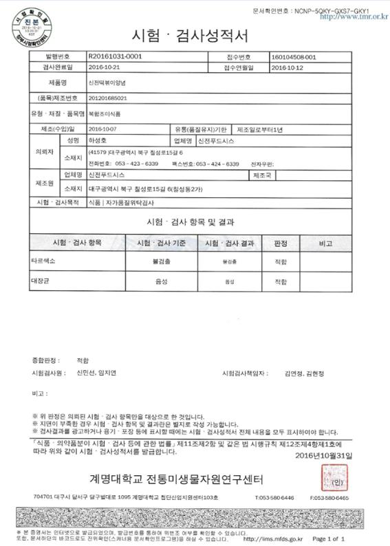 2016 | 2016-10 검사성적서 페이지 정보 작성자 신전떡볶이 작성일16-11-23 14:11 조회2,027회 댓글0건 관련링크 이전글 다음글 검색 목록 본문 2016-10 검사성적서 이전글 다음글 검색 목록